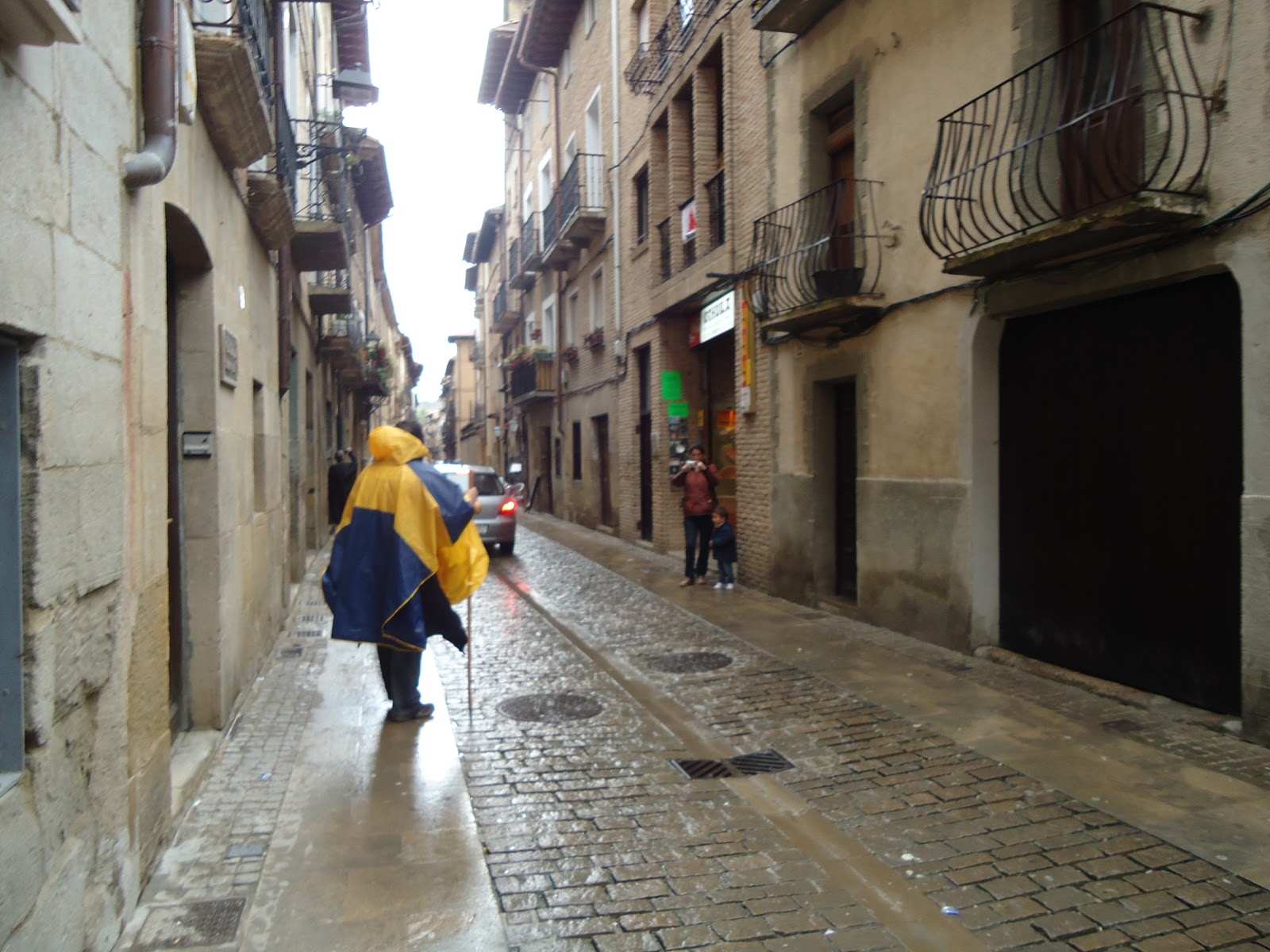 Es salir de Eunate y de nuevo el cielo comienza a oscurecerse. Escuchamos truenos nuevamente y... ¡a ponerse los ponchos, que otra vez toca! A las siete de la tarde entramos en el pueblo de Óbanos, lugar donde se unen los Caminos Francés y Aragonés. Puede decirse que aquí, más que en Puente la Reina, acaba el Camino Aragonés.